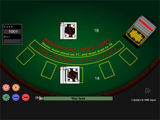 У цій картковій грі вам треба набрати 21 очко, можна небагато менше, але головне, щоб не було перебору. Туз 11 очків, король 4, дама 3, валет 2.